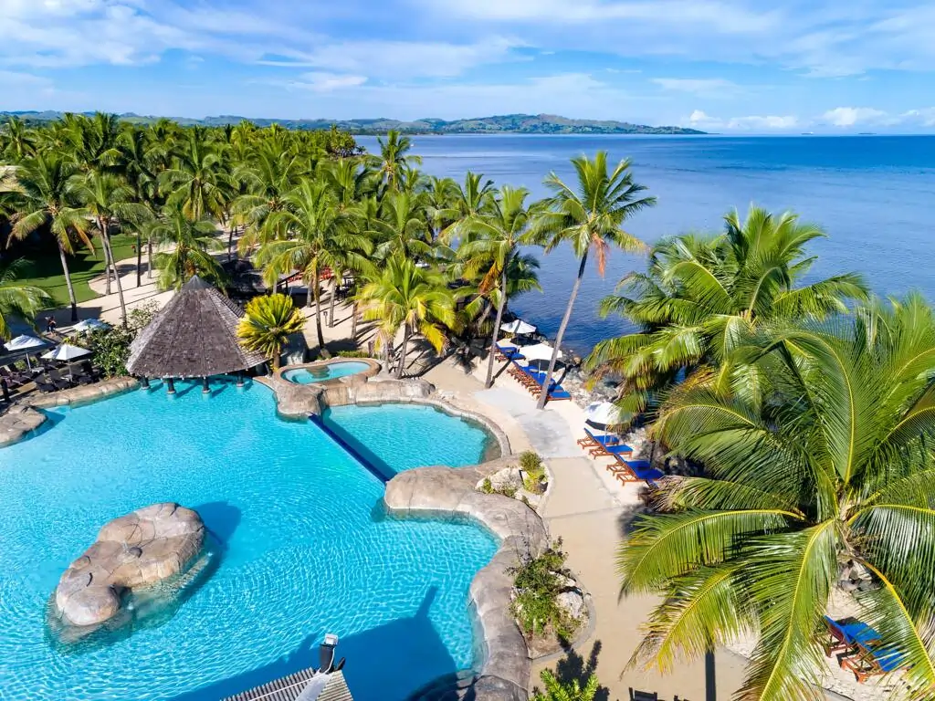 Set on Sonaisali Island near Nadi, this resort offers a family‑friendly setting with some deals starting from US$200‑300/night according to published listings on trip.com.